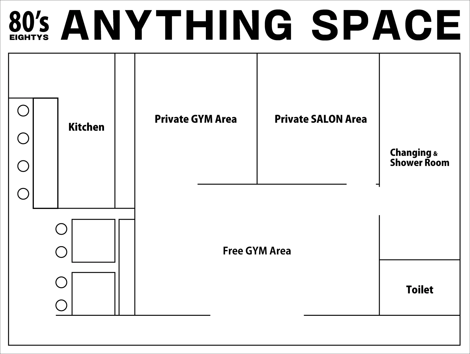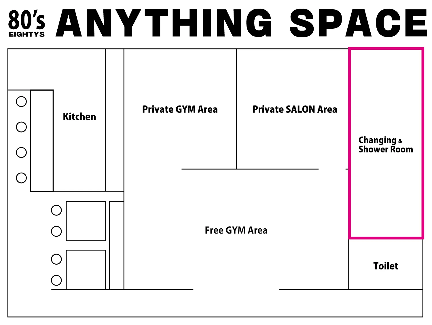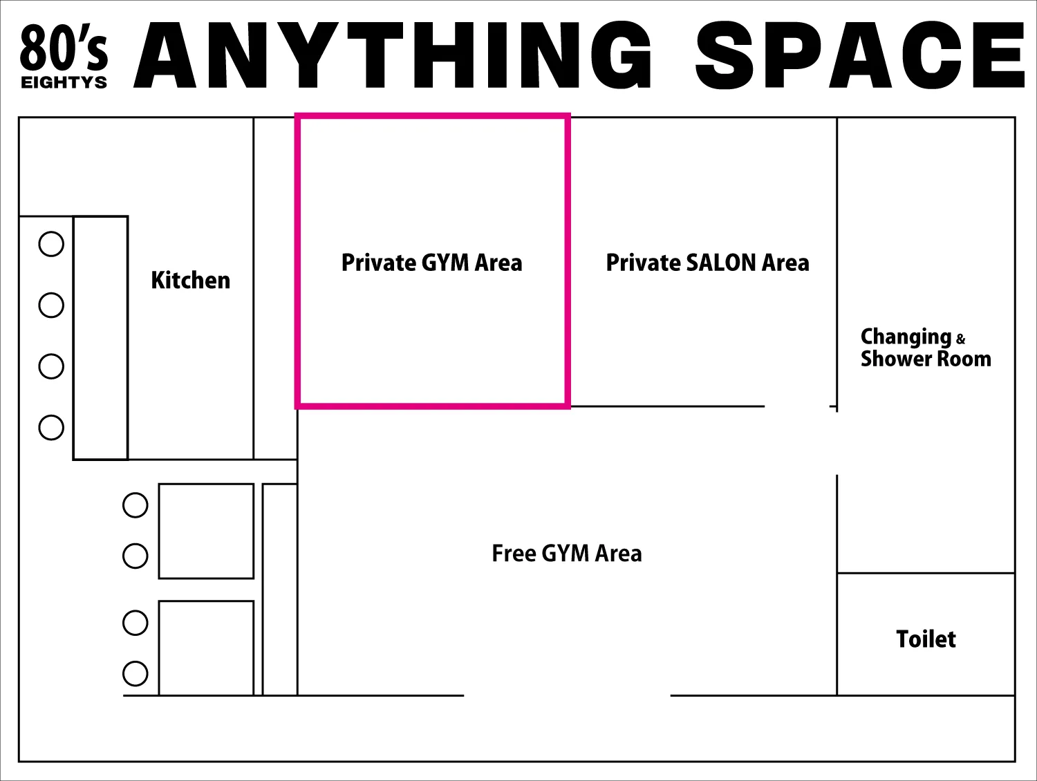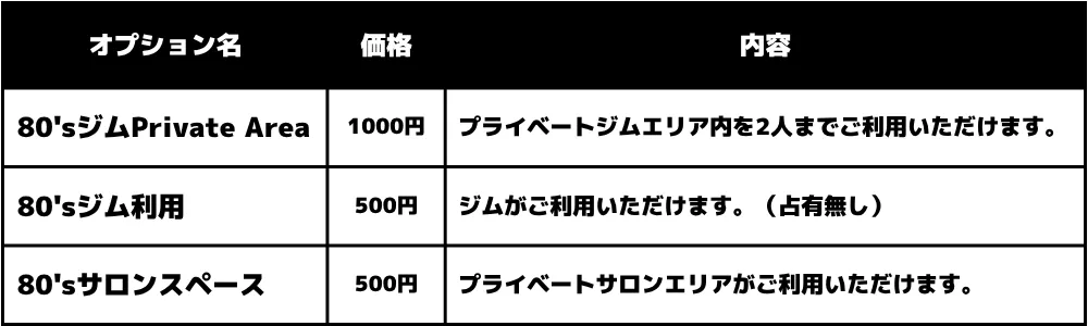 「80’sジムPrivate Area」1000円/1時間です。