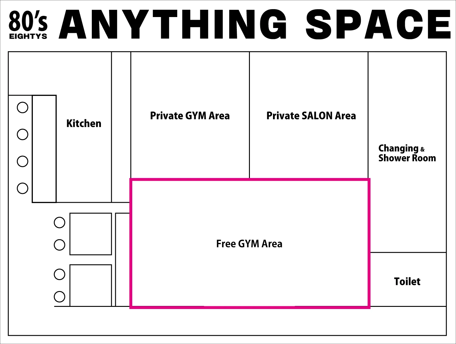 こちらのスペースは「80’sジムPrivate Area」をご予約のお客様が優先してご利用いただけます。
