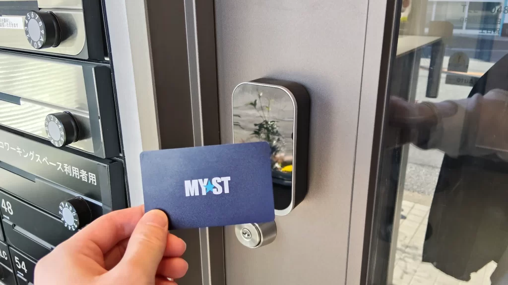 ICカードをカードリーダにタッチして入室出来ます。