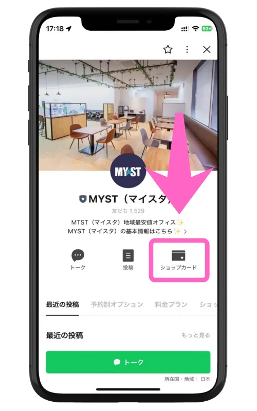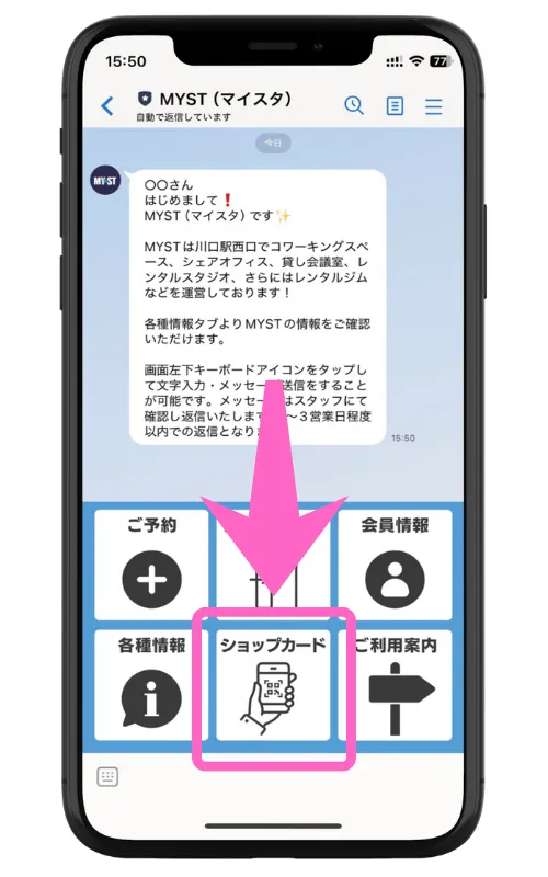 ショップカードはMYST公式LINEよりご利用いただけます。